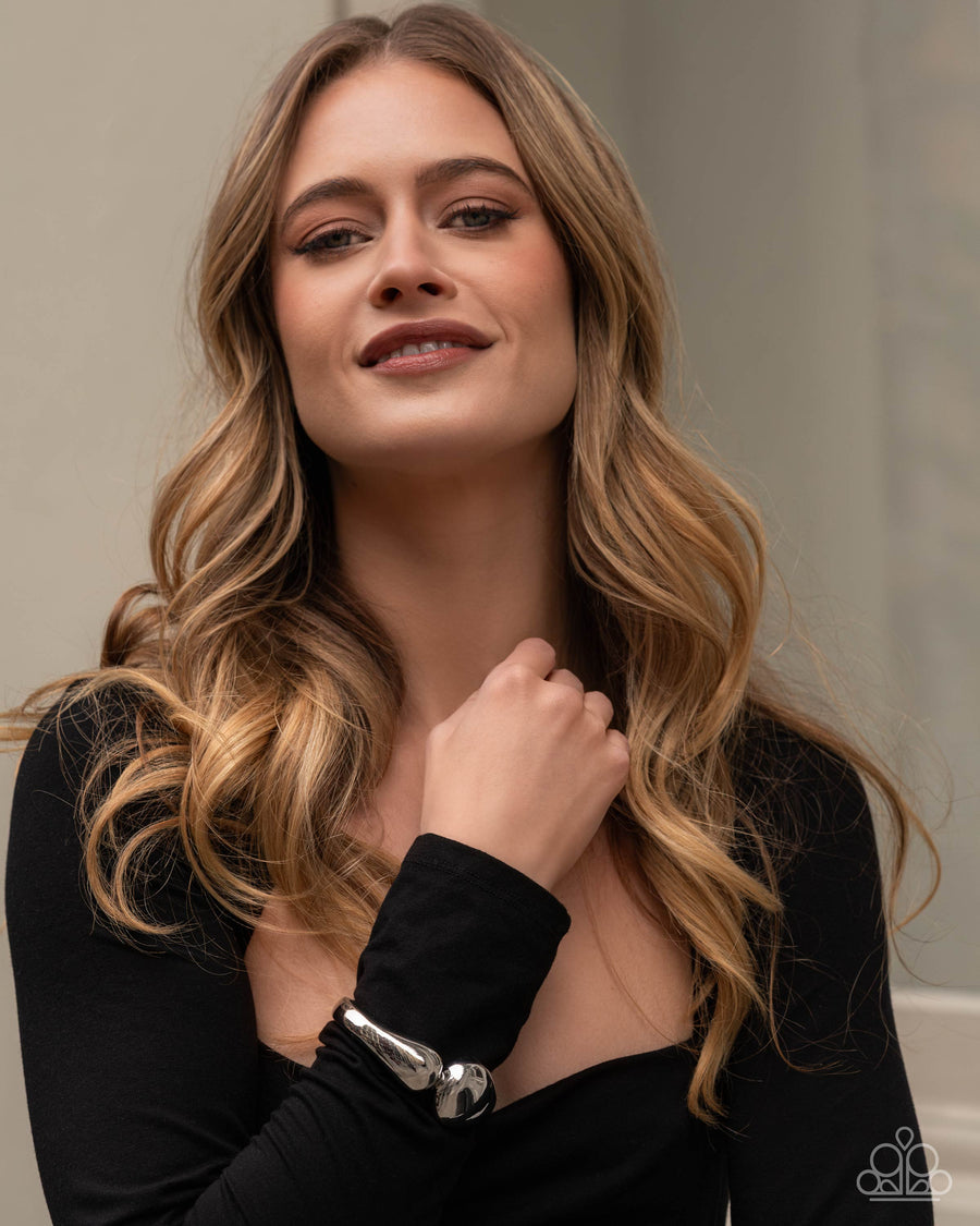 PREORDER Stunning Sculpture - Silver High Sheen Hinge Bracelet - EMP Exclusive - Paparazzi #P9BA-SVXX-299XX