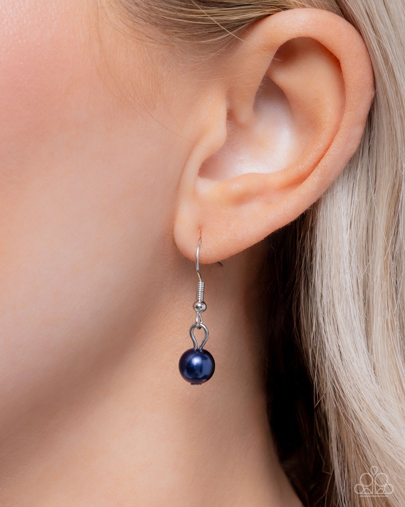 Interrupting a silver paperclip chain, a collection of hammered and sleek silver rings in varying sizes, a silver bead, Montana pearls, and a UV-shimmery blue emerald-cut gem coalesce and pattern below the neckline for an elegantly eclectic display. Features an adjustable clasp closure.